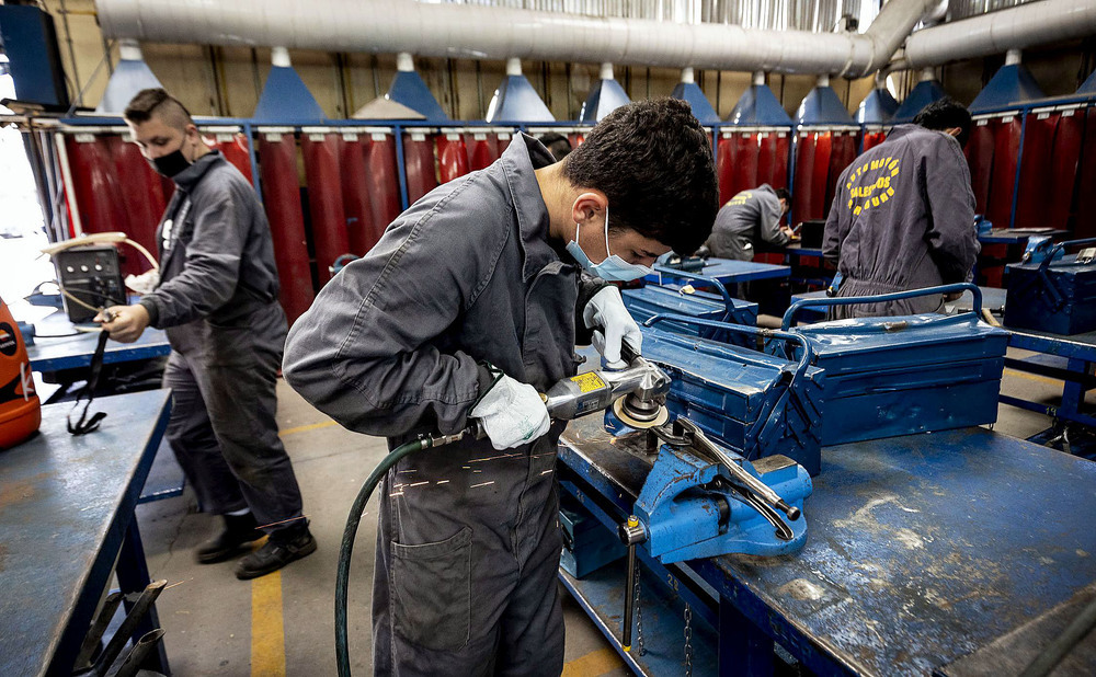 Las empresas demandan ya más alumnos de FP que universitarios: los 10 módulos con empleo 100%. Un alumno de FP durante una clase práctica de soldadura. E.E.