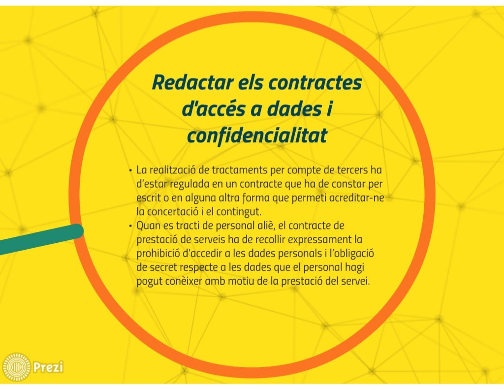 L'AEPD ha publicat unes directrius per a la redacció d'aquest tipus de contractes (consulta la secció de. 'Materials en línia') Delegat/da de protecció de dades: és una figura que l'RGPD estableix com a obligatòria en el cas d'administracions públiques o d'organitzacions l'activitat principal de les quals impliquin el.