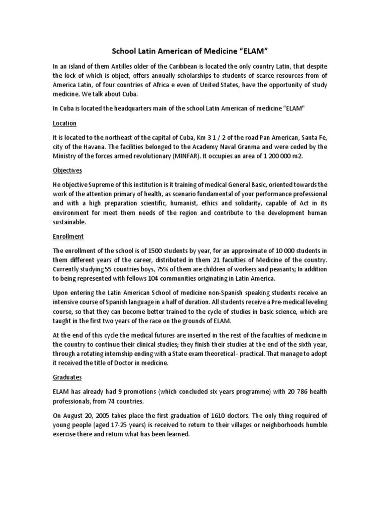 Escuela Latinoamericana de Medicina Elam PDF Medicine Science