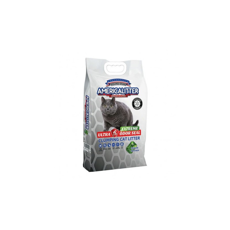 America Litter Ultra Odor Seal. America Litter Ultra Odor Seal es una arena para gatos con un gran poder absorbente y aglomerante. Su fórmula especial de bentonita y carbón activado sella completamente los malos olores y reduce considerablemente el polvo. Es 100% natural y libre de agentes tóxicos. Presentación: 7 y 15 kg.