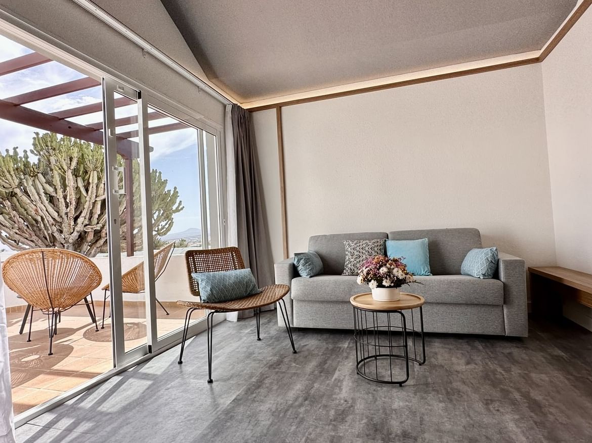 Ideal for group and family holidays in Fuerteventura, the ten Two Bedroom accommodations measure 35 meter square and can suit up to four adults and one child. These charming villa-style residences come equipped with air conditioning, safe, telephone with direct outside line, sofa bed, flat screen TV, minibar (€) and a private bathroom with.