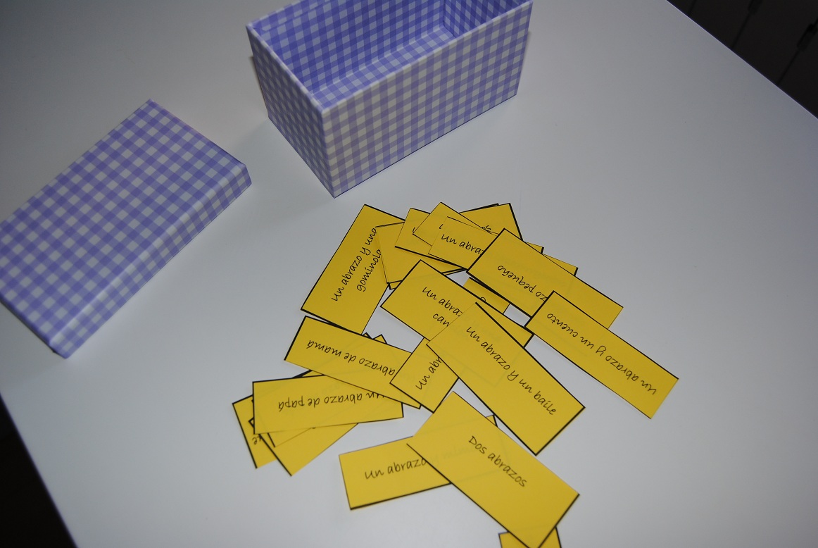 CAJA DE LOS ABRAZOS. Abrazo largo Abrazo doble Abrazo y un beso Abrazo y cuento Un abrazo de mamá Un abrazo de papá Abrazo y chocar las cinco Abrazo y baile Abrazo de bocadillo Abrazo y golpe de cadera Abrazo y una canción Abrazo y un salto Abrazo y vuelta Abrazo sin manos Abrazo con cosquillas