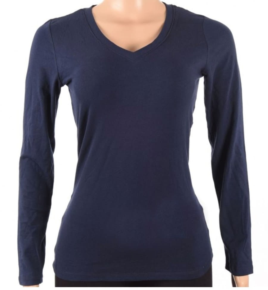 Camiseta Básica Azul Mujer Lady Escote En V Manga Larga MundoTrabajo