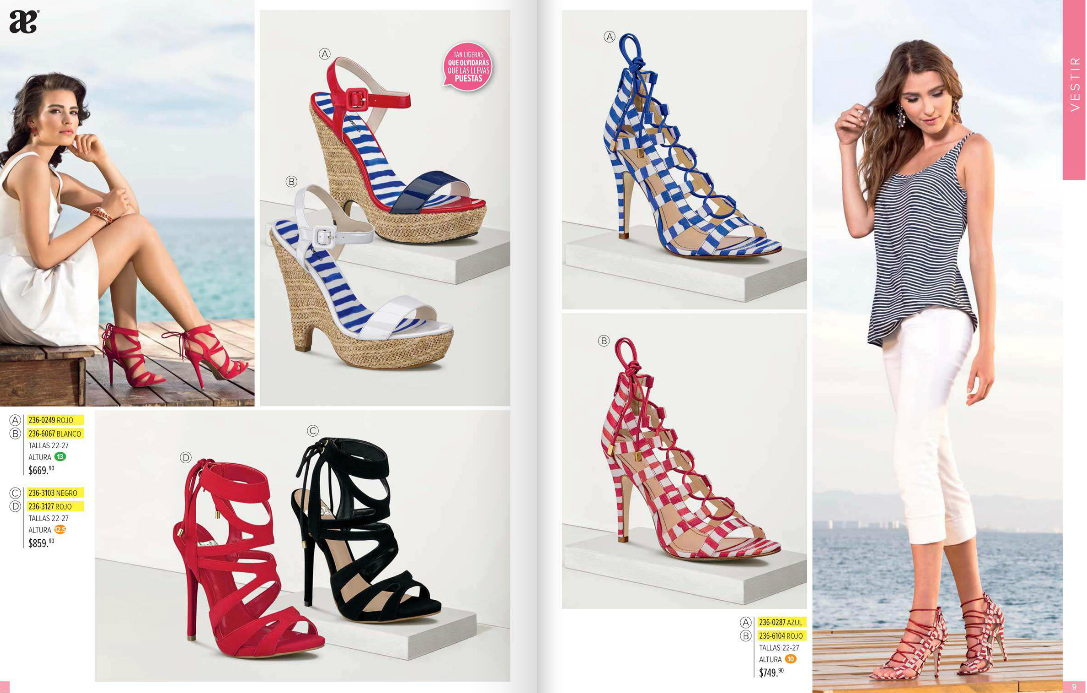 Zapatos Andrea 2018. Catálogos Andrea nos ofrece las últimas tendencias de moda en ropa y zapatos para damas , caballeros y niños. Así como productos de belleza , lenceria juvenil para mujer y accesorios de todo tipo. Además, Catálogos Andrea, cuenta con el precio impreso de todos los productos.