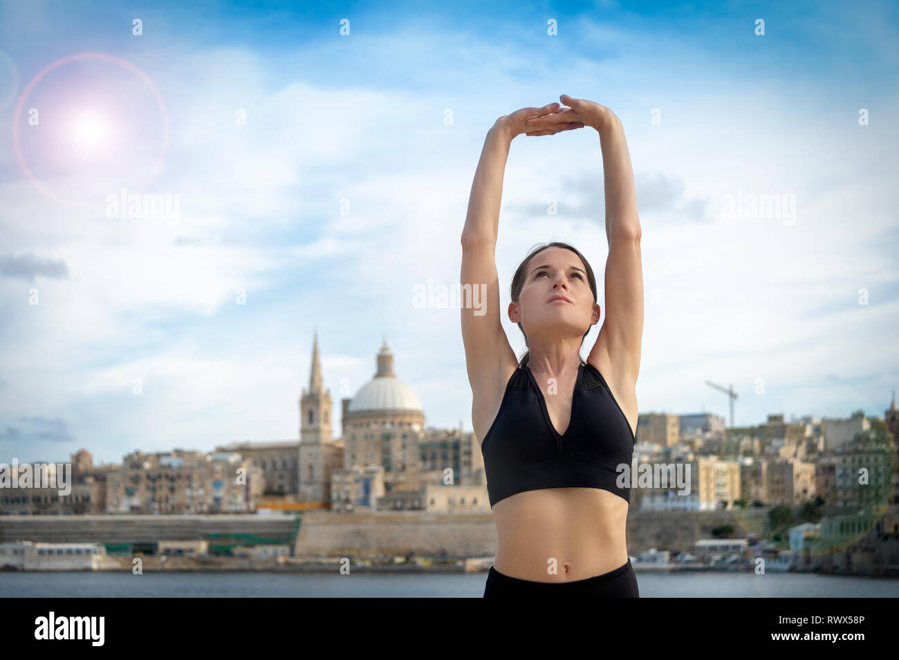 Urdhva significa «hacia arriba» y hasta «mano». En urdhva hastottasana, el cuerpo se inclina hacia los lados, lo que permite alargar, y suavemente estirar, brazos, columna y piernas.. Repite con una inclinación a la izquierda y con los brazos rectos. Inhala para volver a la posición inicial. Tiempo. De 30 segundos a 1 minuto. Beneficios.