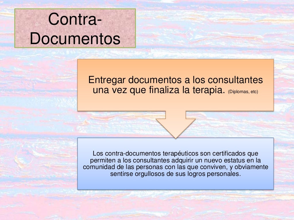 En muchos lugares aparece la definición de terapia narrativa como un enfoque respetuoso y no culpabilizador que sitúa a las personas como expertas de sus propias vidas (Morgan, 2004). Esto conlleva un cambio de conceptualización con respecto a quién busca ayuda. No se le llama paciente, ni se le llama cliente sino que se le denomina.