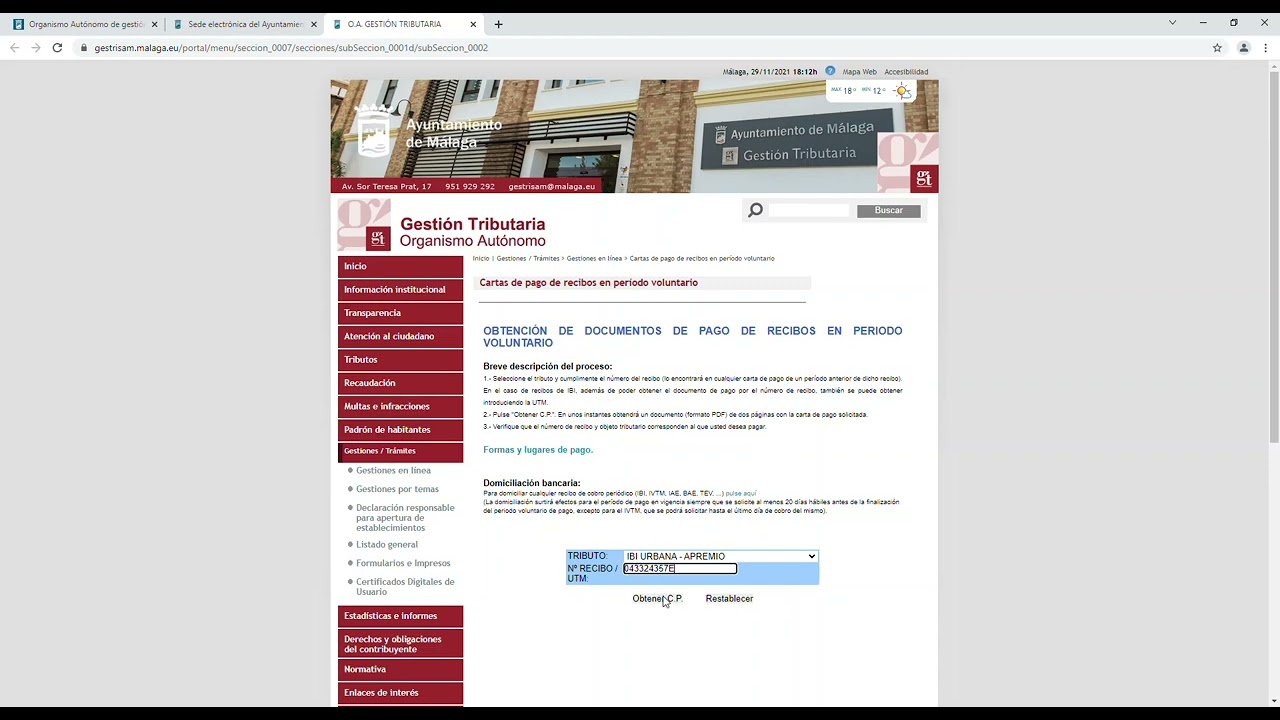 Organismo de Gestión Tributaria Diputación de Barcelona. Dirección: Travessera de les Corts, 131 CP: 08028. Teléfono: 934032000, 677 171 275. Web: https://orgt.diba.cat/ca/. Observacions: Centro de información Tributaria mediante los teléfons 93 202 98 02 , si la consulta es de Tributos, y 93 202 98 05 , si la consulta es por multas de.
