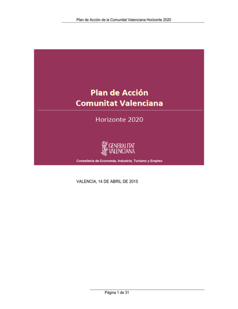 Plan de Acción de la Comunitat Valenciana Horizonte 2020