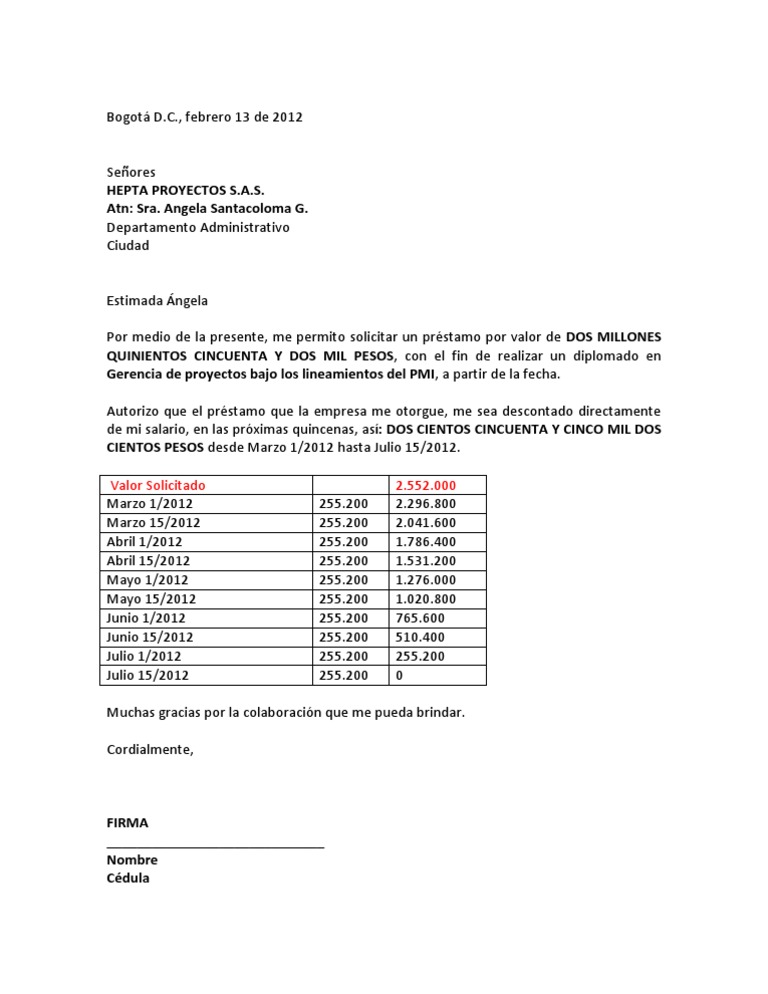 formato de solicitud de prestamo