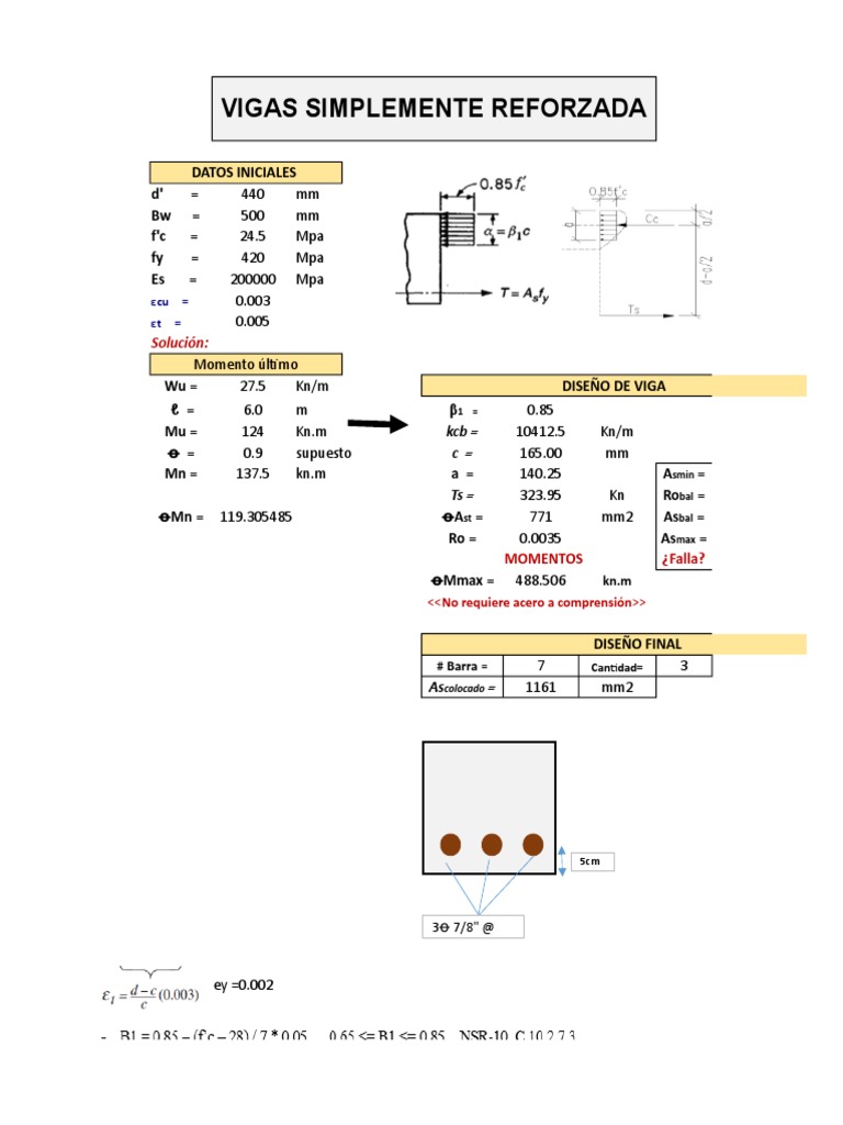 Hoja de calculo para el diseño Vigas Doblemente armada y Simplemente armada Naturaleza