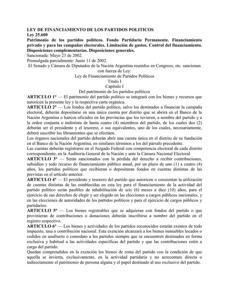 LEY DE FINANCIAMIENTO DE LOS PARTIDOS POLITICOS