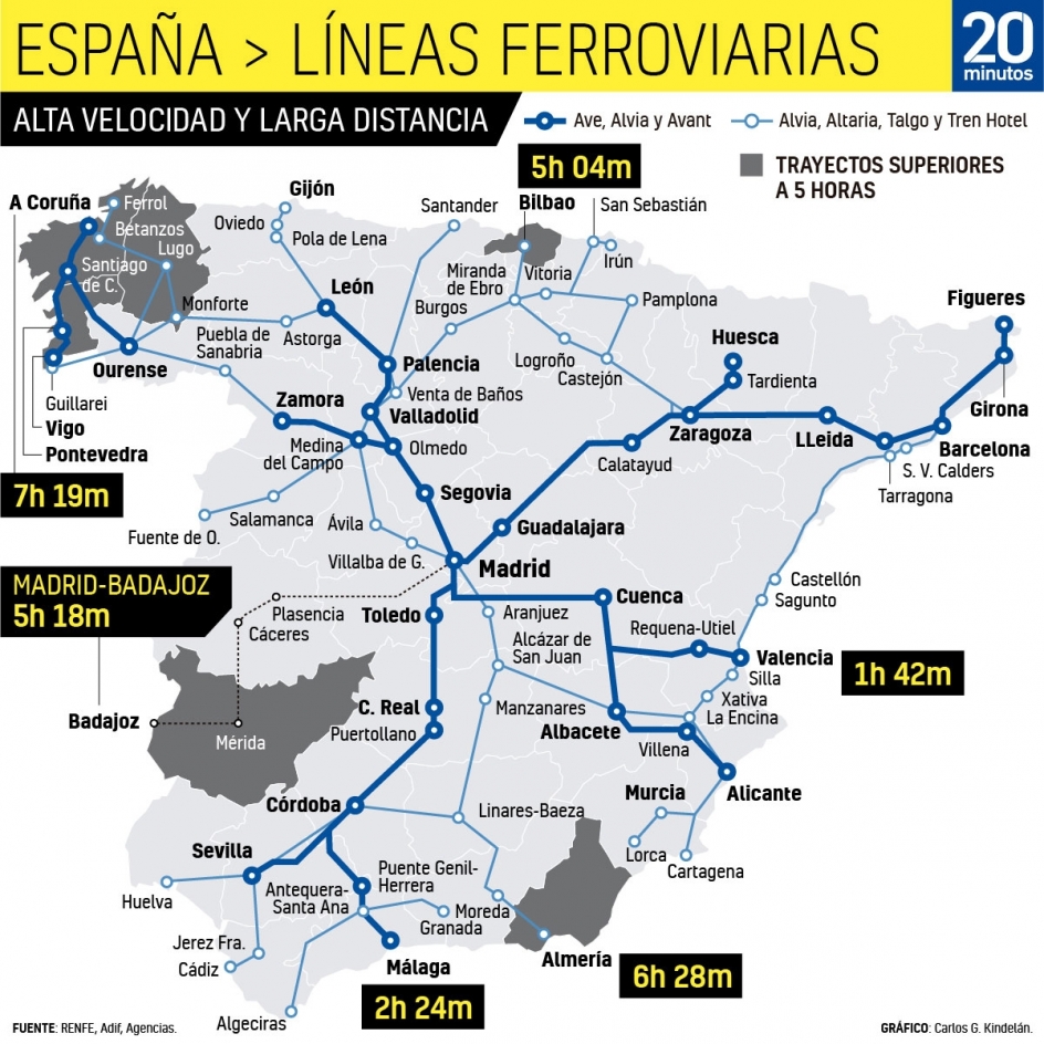 Mapa de las líneas ferroviarias de alta velocidad y larga distancia en