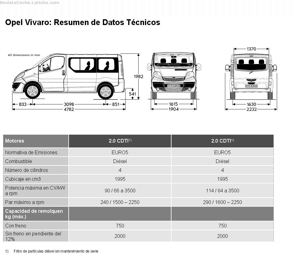 Precios Opel Vivaro 2024 Todos los datos técnicos de Opel Vivaro