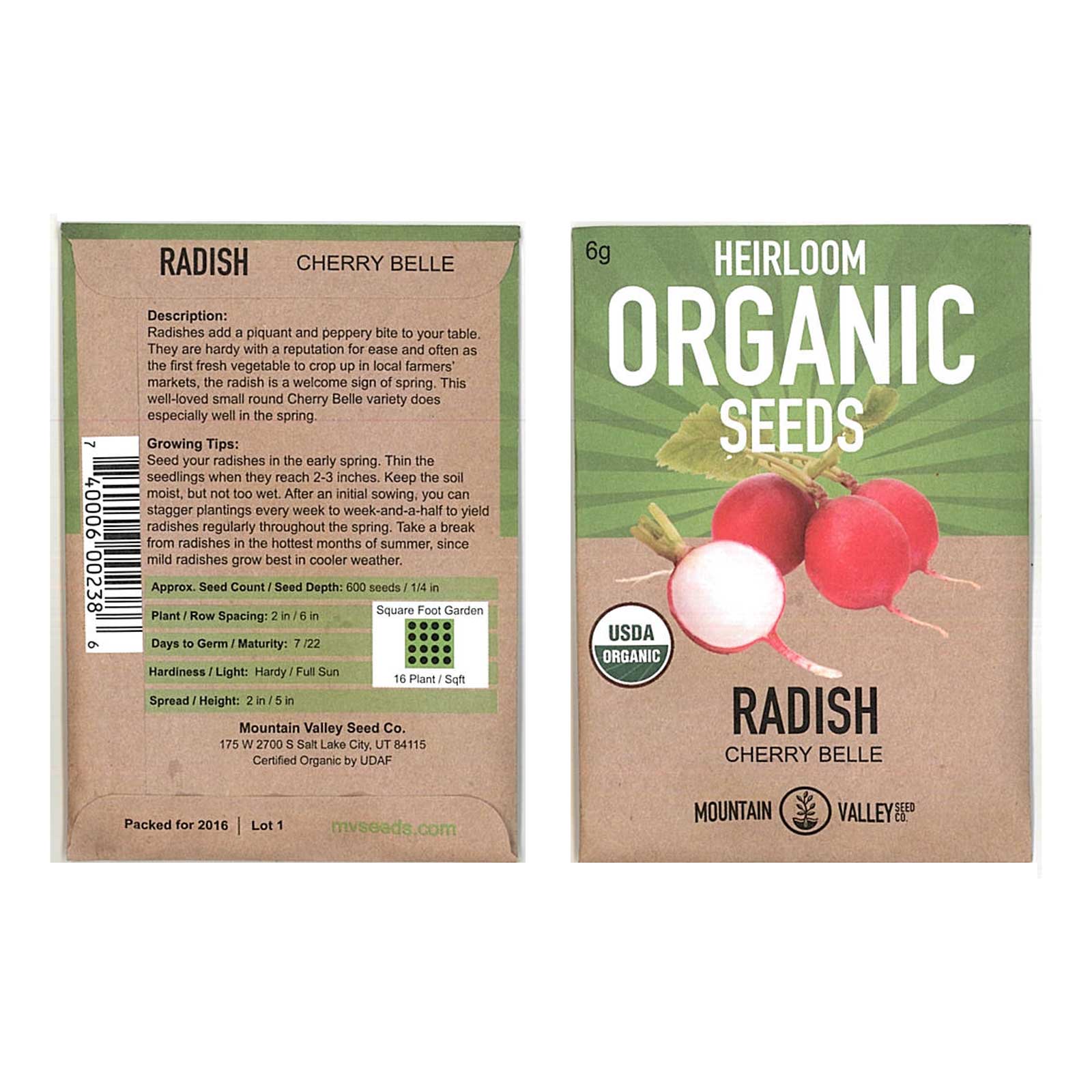 Organic Cherry Belle Radish Seeds 6 Gram Seed Packet Heirloom Garden Seeds, NonGMO, AAS