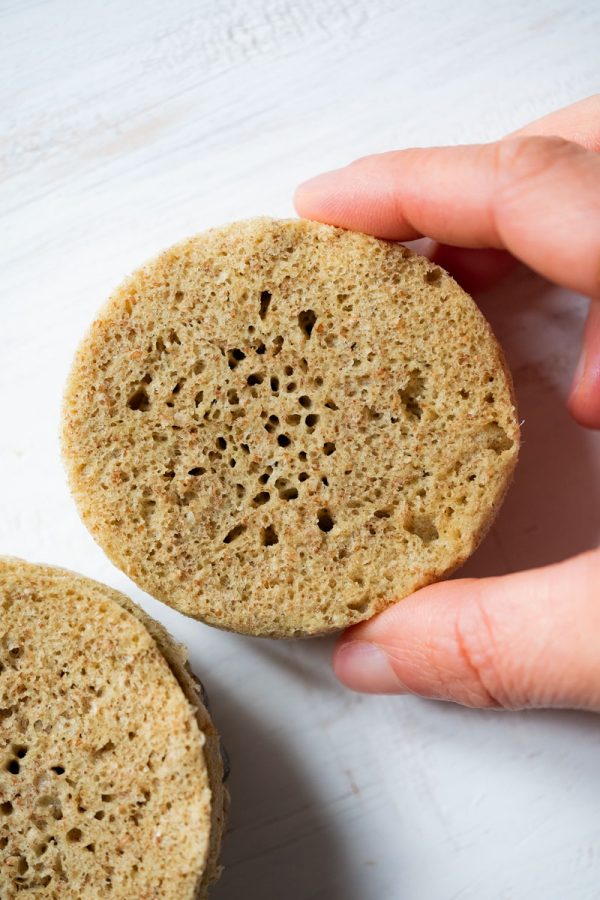 Cocina el pan de avena en el microondas durante 2 minutos a 850w. El pan aumenta de tamaño de una forma muy rápida, si vez que aún no ha llegado a los 2 minutos y ya está listo, y por ello sobre cociéndose, no dudes en pararlo antes de tiempo. Desmoldar con mucho cuidado, ya que recién cocinado es muy fácil de que se rompa y ya estaría.