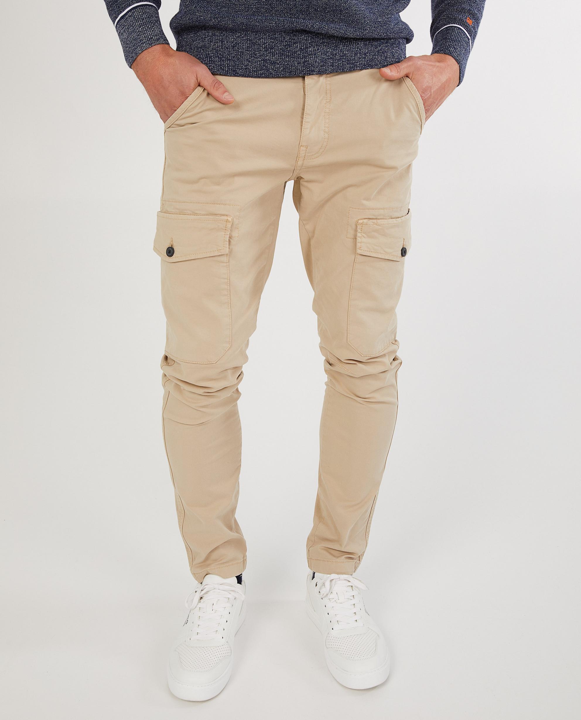 Un pantalón cargo ideal para entretiempo y especialmente diseñado para hombres. Es ligero, cómodo de llevar y su color beige le permite