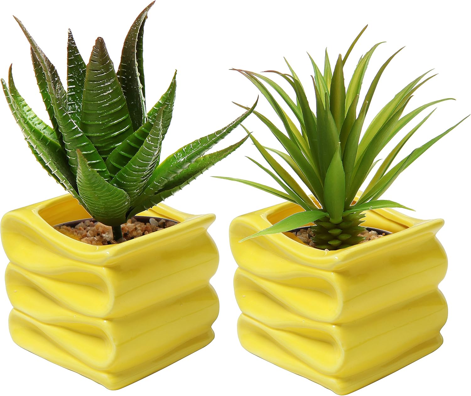 MyGift Maceta pequeña de cerámica (4.0 in, 2 unidades), color amarillo Jardín y