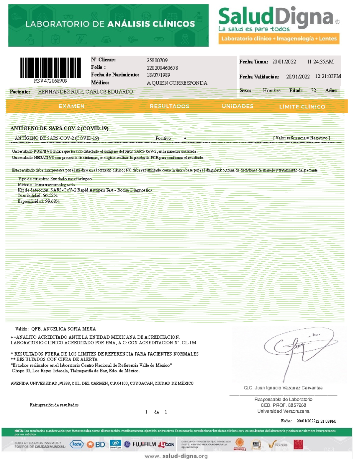 prueba de covid emitido por salud digna 220200460658 25800709 32 A