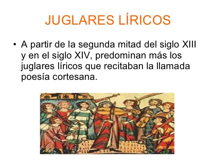 Miniatura de unos juglares en las Cantigas de Alfonso X de Castilla. Se llama Mester de Juglaría al conjunto de la poesía —épica o lírica— de carácter popular difundida durante la Edad Media por los juglares, [1] que eran quienes las cantaban o recitaban para el recreo de nobles, reyes y público en general. En castellano se menciona por primera vez la palabra juglar en 1116, época.