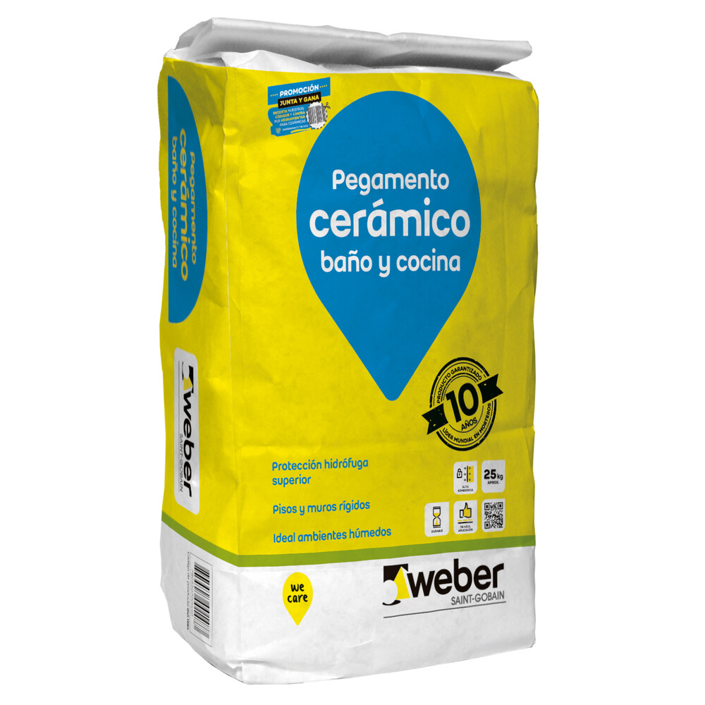 Pegamento Weber Flexible Blanco. Es uno de los pegamentos más usados para el enchape de cerámicas debido a su versatilidad. Debido a su alta capacidad de adherencia también se recomienda su uso para pegar cerámica sobre cerámica sin necesidad de remociones. Este pegamento cerámico puede aplicarse tanto para instalaciones en interiores o.