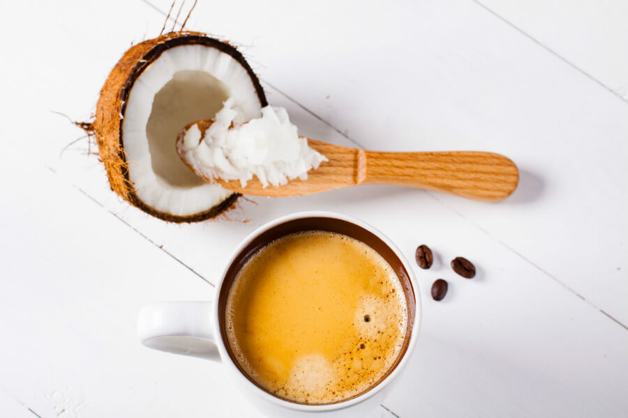 Cuando el café esté caliente, agregar 1 cucharada de aceite de coco virgen extra a la taza. Puede ajustar la cantidad según sus preferencias, pero sin exceder los 15 gramos.